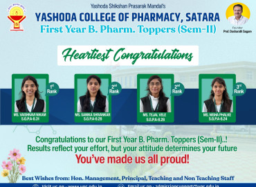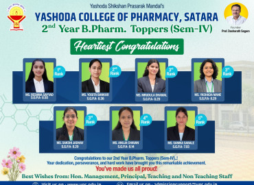 Second year 2024-25(Sem-III) Rankers of Yashoda College of Pharmacy
