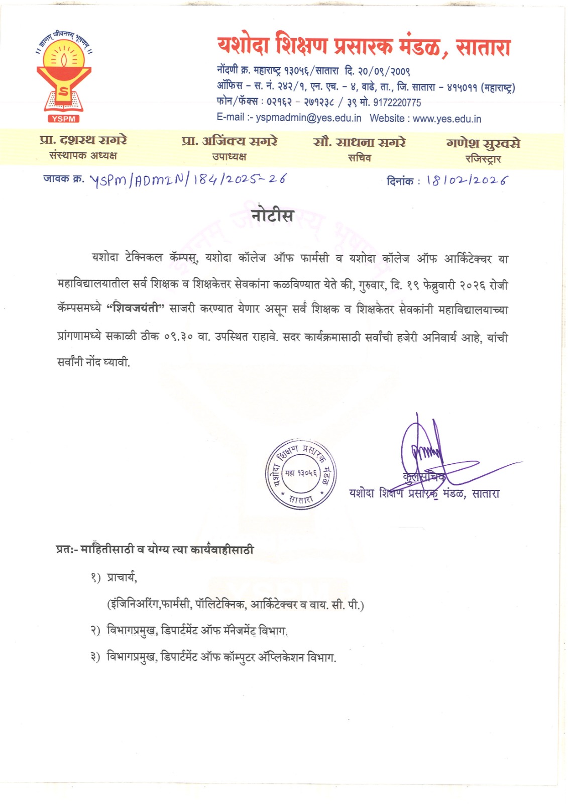 नोटीस - राष्ट्रीय युवा दिन |
