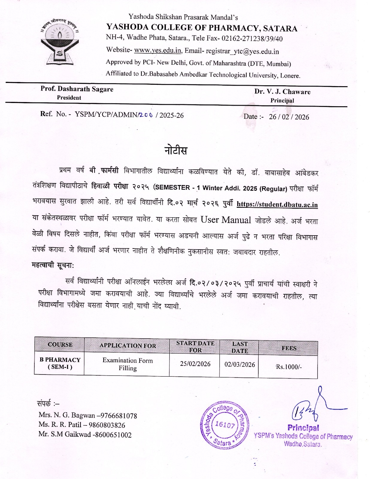 B. Pharmacy 2nd Year registration for next Semester 2025-26 |